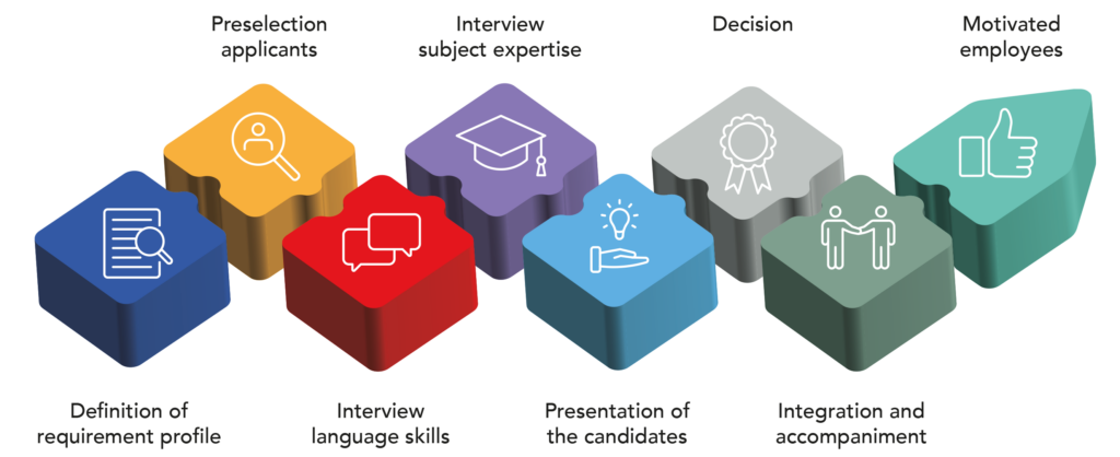 - Pre-selection of candidates (professional, linguistic, human)